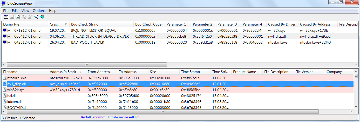Аппаратные проблемы часто сопровождаются выпадением Windows в синий экран. Отображаемые на нем коды системных ошибок для большинства пользователей выглядят неинформативно. Понять суть возникшей проблемы поможет утилита BlueScreenView. Она сканирует файлы мини-дампов и расшифровывает найденные ошибки.