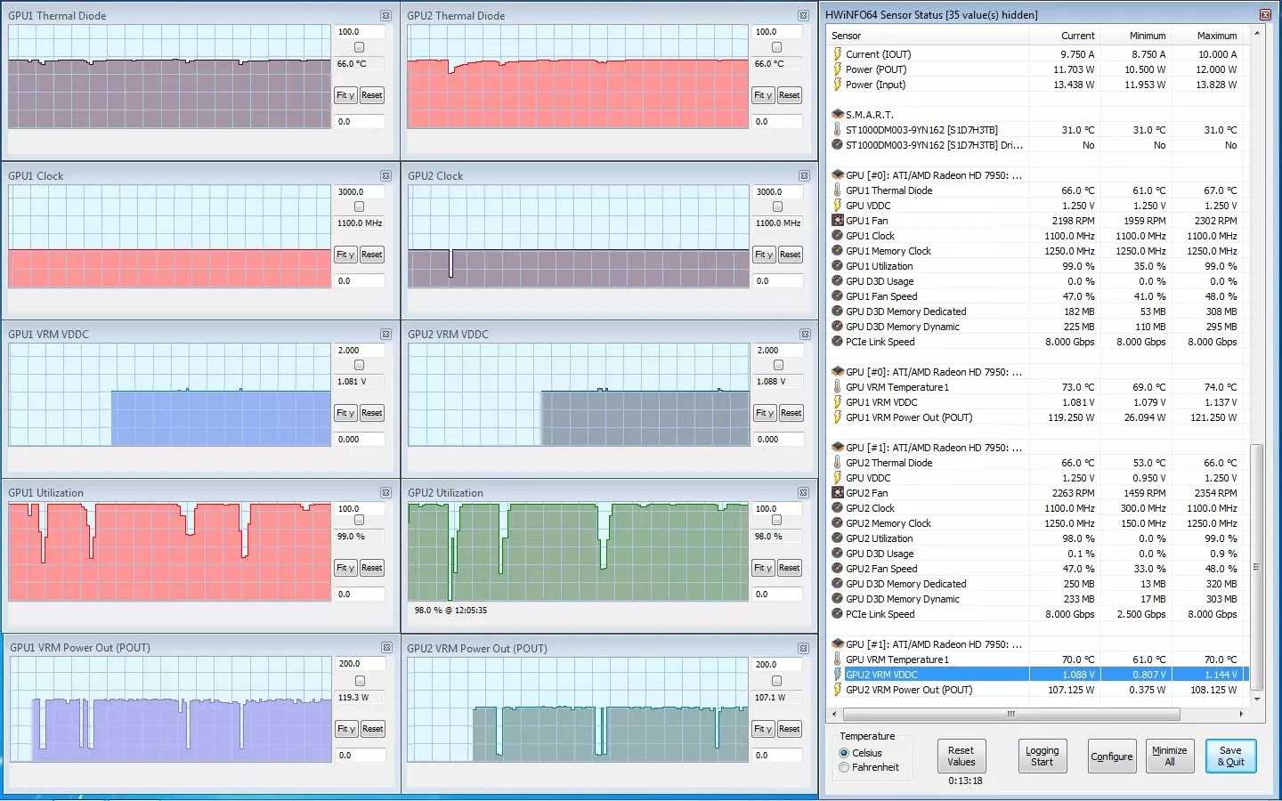 Пока поддержка 64-разрядных систем у HWiNFO неполная, и опция сравнительного тестирования производительности доступна только в 32-разрядных версиях программы. Забегая вперед, отмечу, что из всех участников обзора только эта утилита корректно отобразила напряжение на пяти- и двенадцативольтовой шине: 5,003 В и 11,968 В соответственно. Две другие показывали абсурдные величины, при которых компьютер в принципе не может работать.