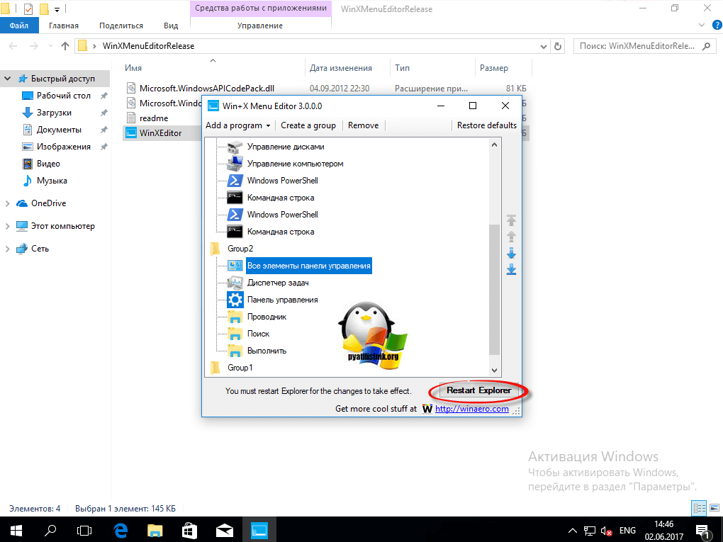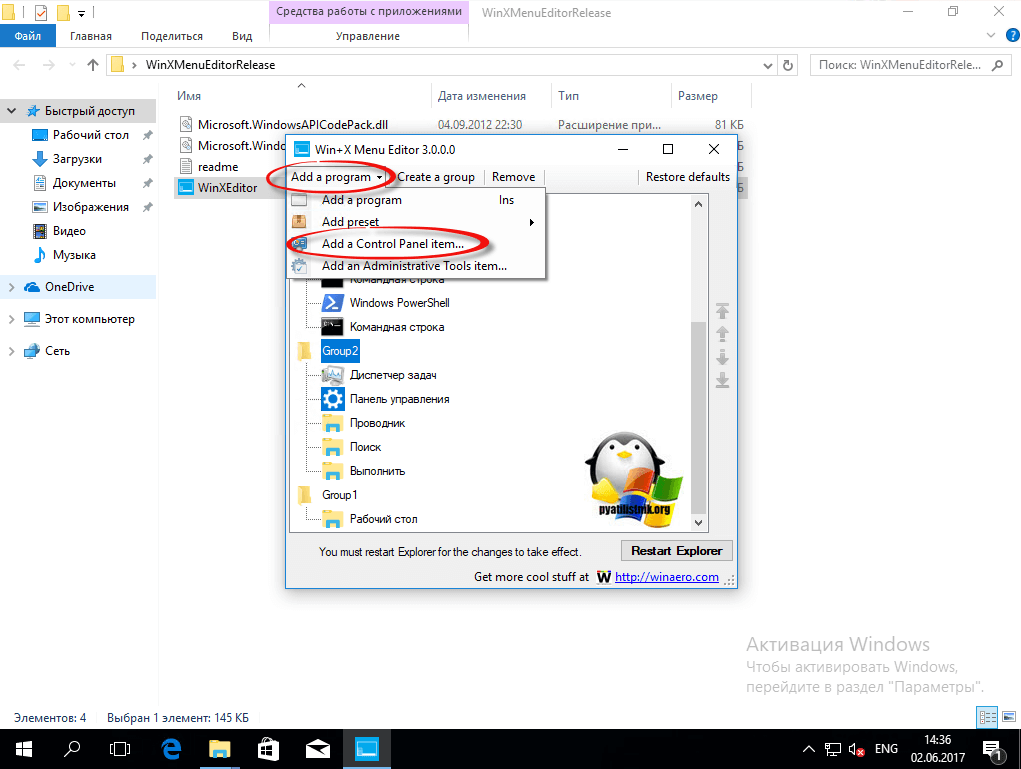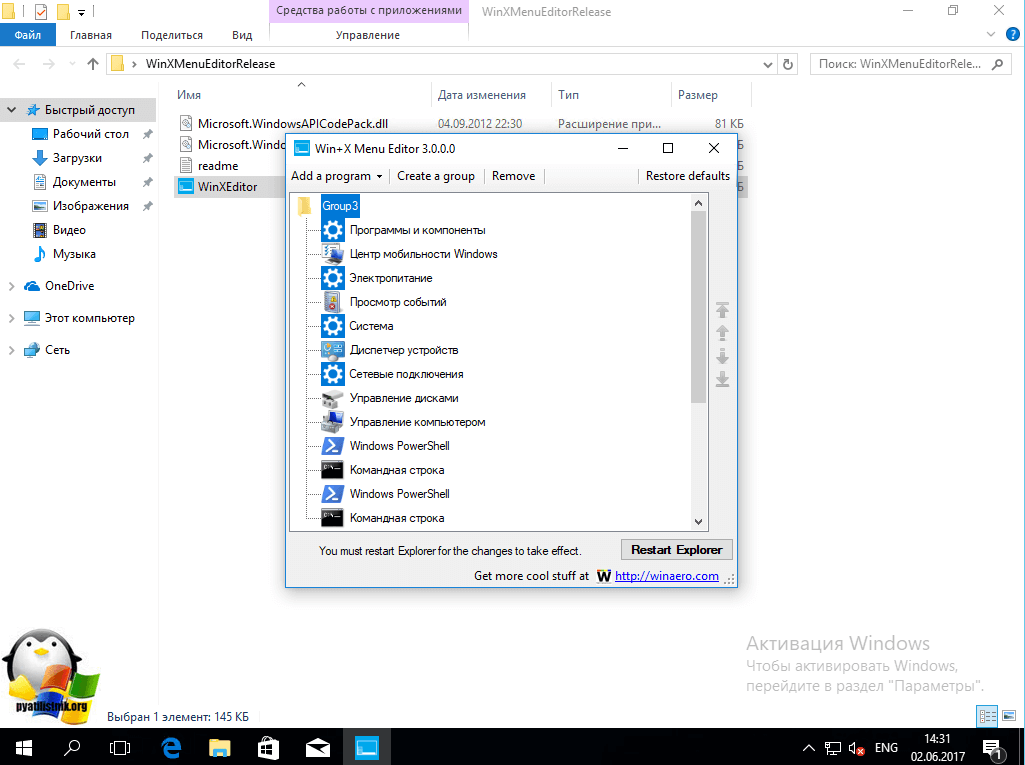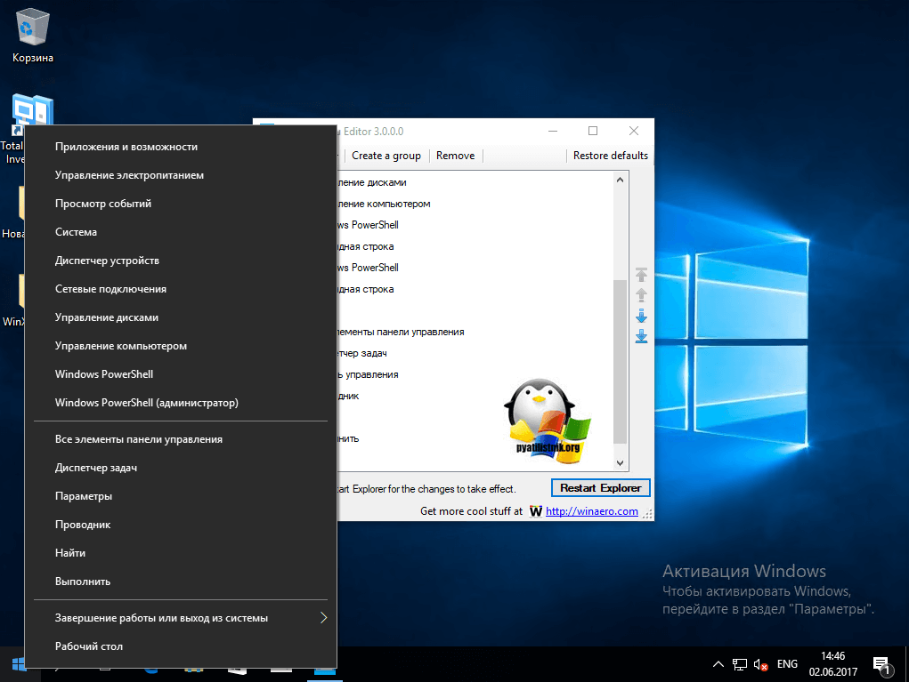 Win+X Menu Editor – редактор контекстного меню для кнопки «Пуск» в Windows 10