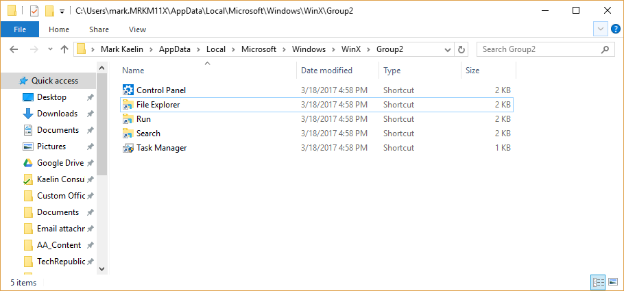 The commands for the Win+X menu are located in this file folder, as shown in Figure B: