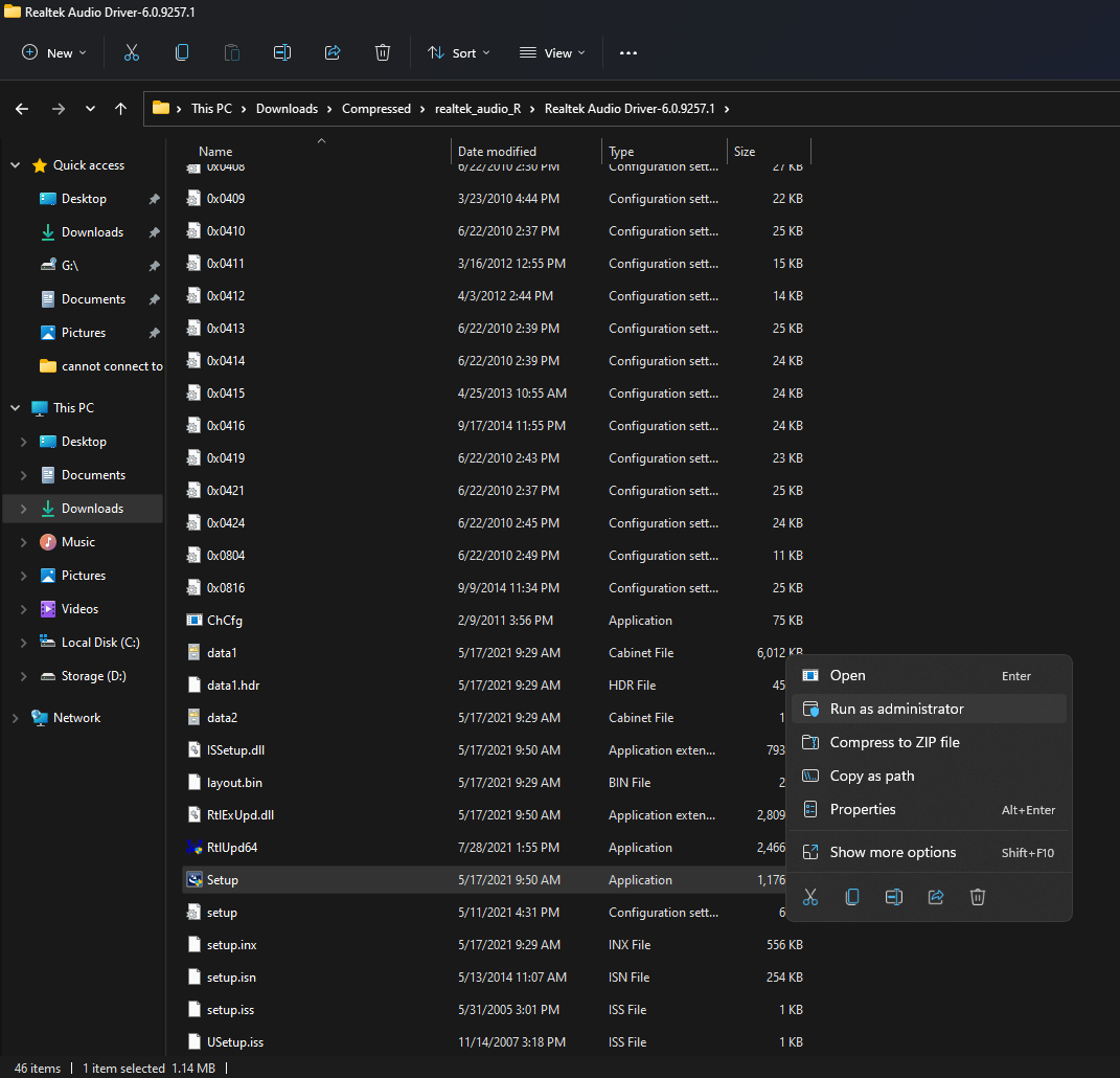 Open the extracted folder and run “Setup.exe” as administrator.