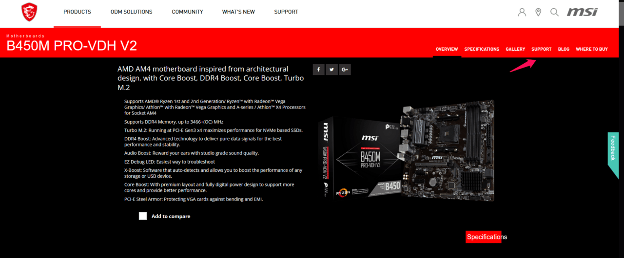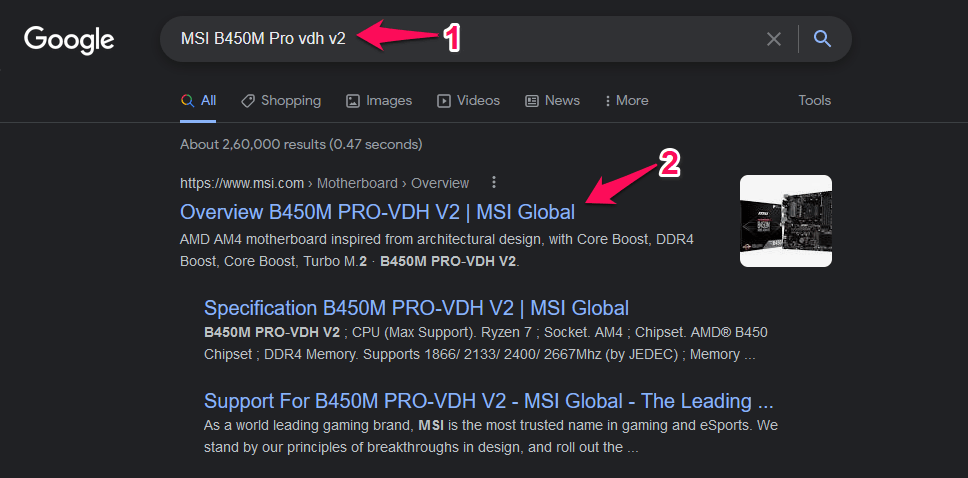 Example: “MSI B450M Pro VDH V2”.