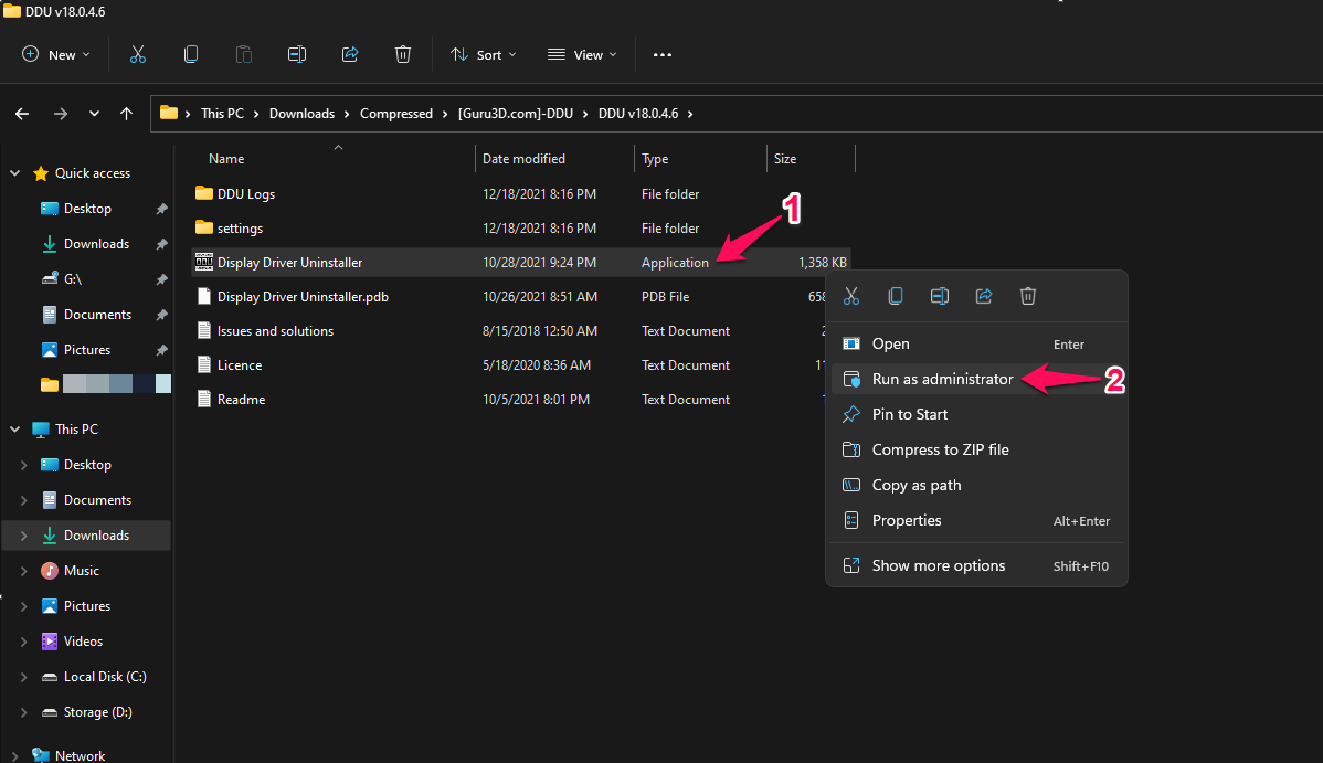 Open Display Driver Uninstaller as administrator.