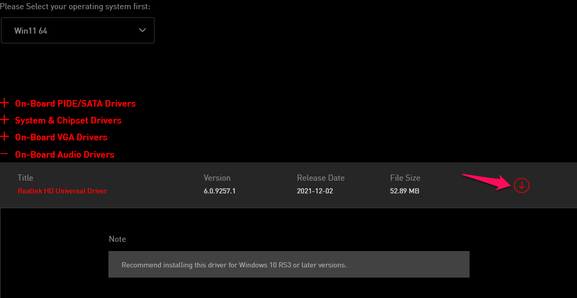 Click on “Onboard Audio Drivers“.