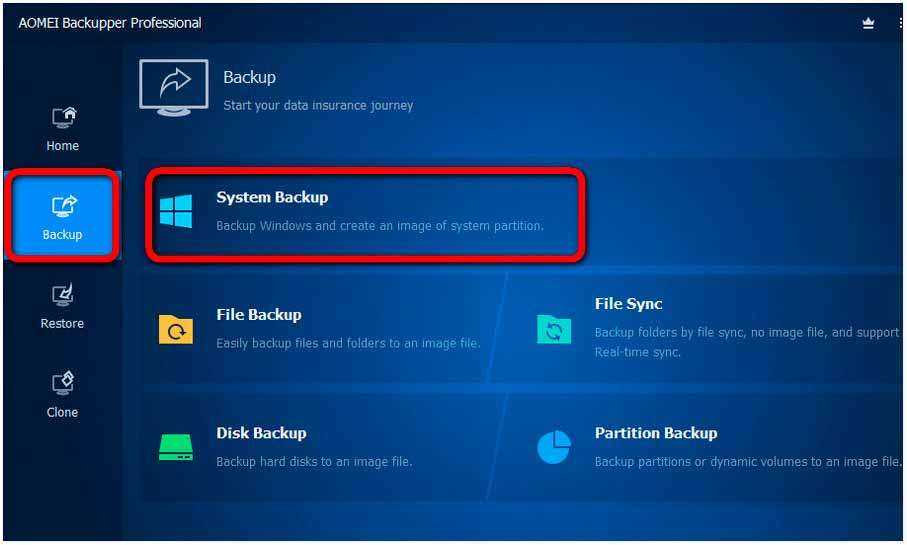 Идём в раздел AOMEI Backupper «Backup». Жмём «System Backup»…