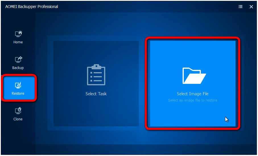 Для восстановления Windows идём в раздел «Restore»… Кликаем «Select Image File»…