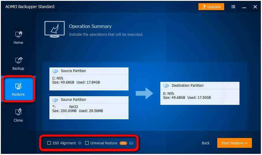 И на этапе сводки операций задействуем опцию выравнивания разделов «SSD Alignment». А потом – опцию упомянутой технологии Universal Restore.