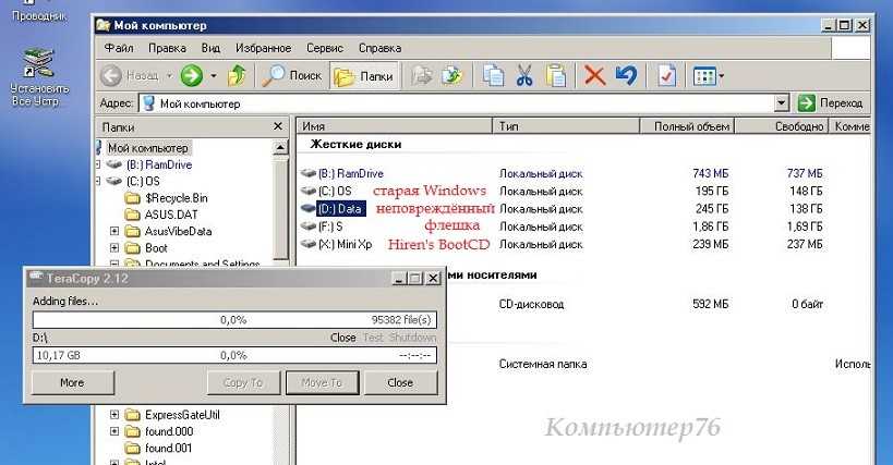 Не торопитесь открывать что-то (особенно в специальных форматах). Hiren’s половину из этого не понимает (ей доступны только фотоформаты, простые видеоформаты, простейшие текстовые документы и веб-страницы), сейчас главное — скопировать всё нужное на свободный раздел, который операция форматирования не затронет, либо (если эти данные не помещаются) на внешний жёсткий диск. Всё откроется потом.