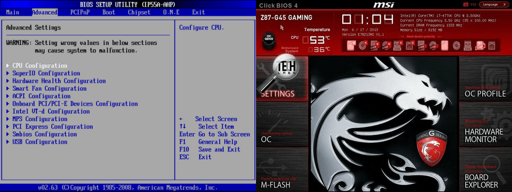 Чтобы BIOS загрузился с первой попытки, нажмите на нужную клавишу 3–5 раз. После этого на экране появится синее меню с пунктами на английском языке. У персональных компьютеров BIOS может выглядеть более привлекательно.