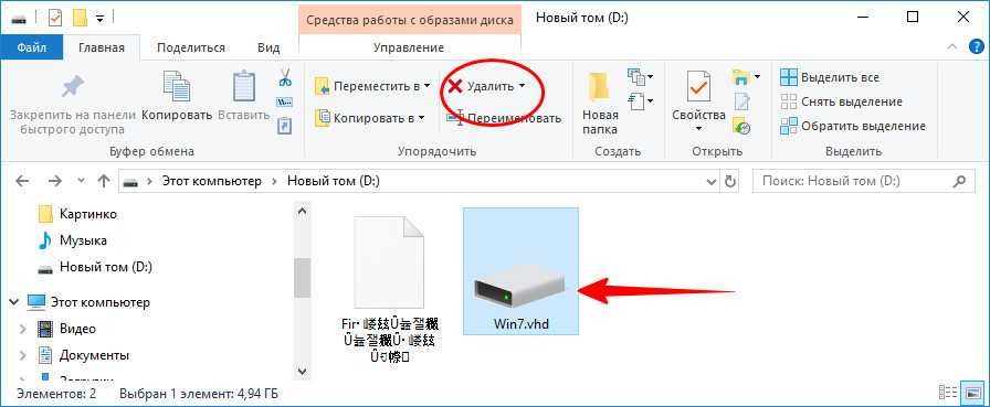 И завершающий шаг — откройте командой msconfig утилиту «Конфигурация системы», переключитесь на вкладку «Загрузка» и удалите загрузочную запись установленной ранее на VHD-диск системы.