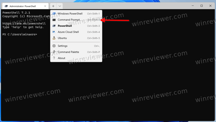 Затем переключите его в командную строку, нажав Ctrl + Shift + 2, или из меню со стрелкой вниз (см. скриншот).