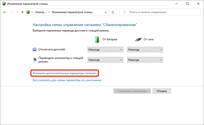 Щелкните по кнопке «Изменить дополнительные параметры питания».