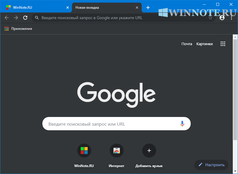 Темный режим Windows 10 включает Dark Theme в Chrome