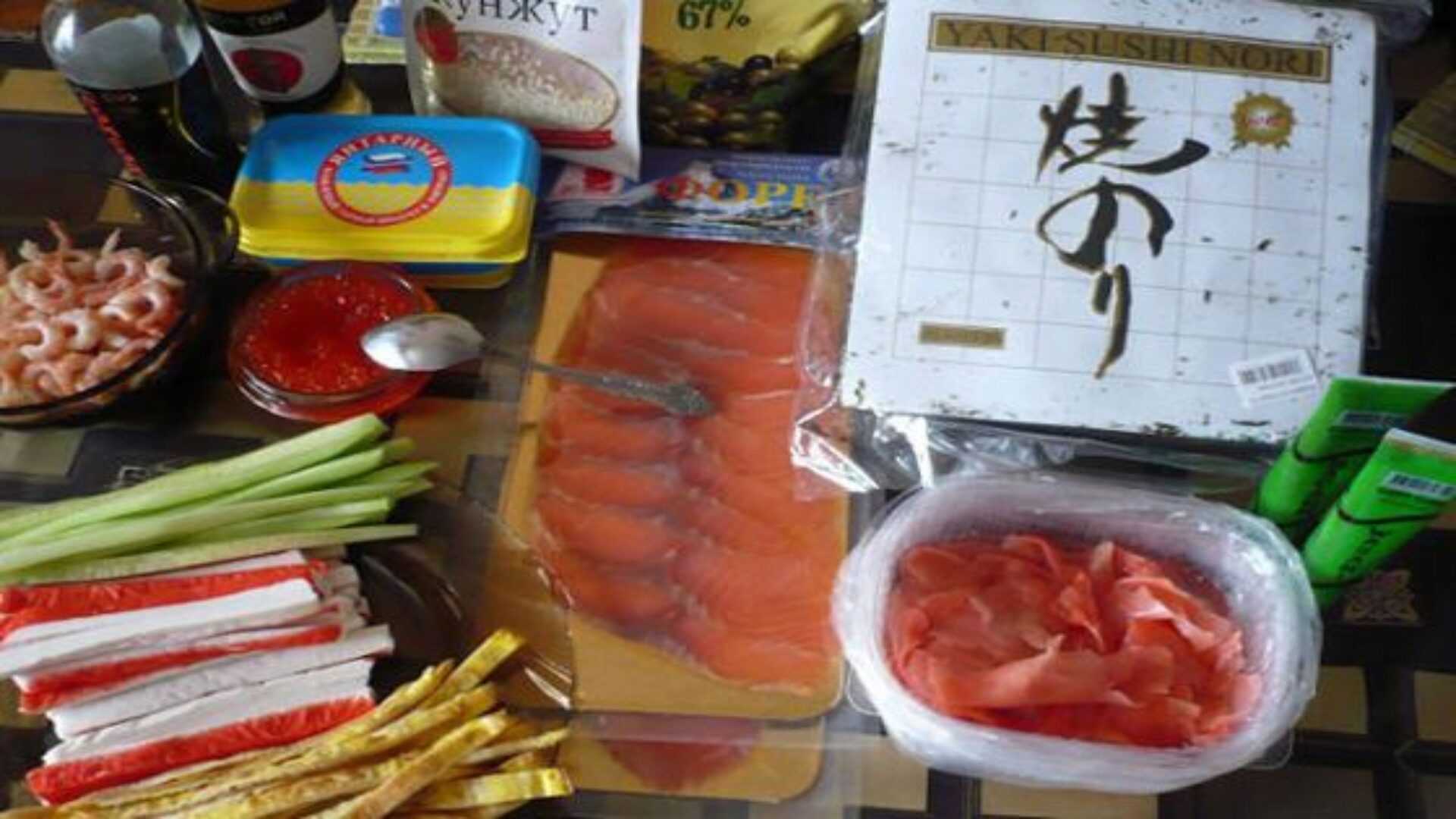 - водоросли «нори» — они продаются разных размеров, для суши — небольшими пластинами, для роллов — в два раза больше (цена зависит от количества)