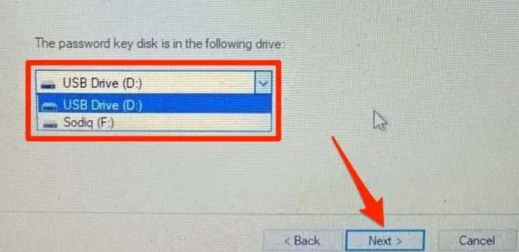 - Select the password reset disk from the drop-down list, select Next, and follow the prompt on the next page to create your new sign-in password.