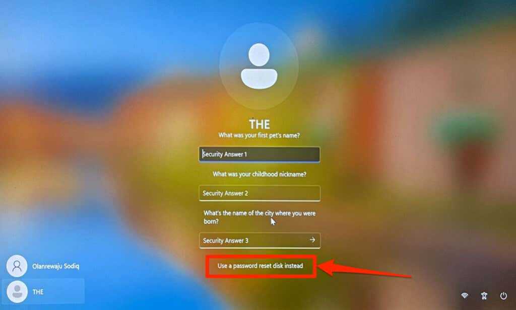 - Select Use a password reset disk instead.