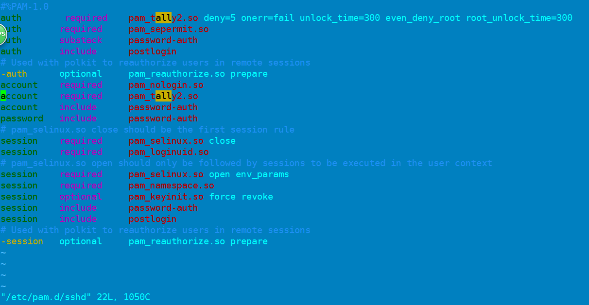 1. Аккаунт не заблокирован: passwd -s username usermod -S имя пользователя 2. Используйте эту учетную запись для входа в xshell, и удаленный хост проверит статус службы ssh локально и увидит, что пользователь не находится в pam_tally2, а пользователю отказано в соединении; 3. Пользователь заблокирован, чтобы проверить и подтвердить ситуацию, проверить /etc/pam.d/security и / var / log / auth, проверить файл sshd в etc / pam.d /; см. Есть ли модуль pam_tally2.so 4. Проверьте, включен ли модуль PAM для входа по ssh, проверьте / etc / ssh / sshd_config, найдите PAM, вы увидите, что PAM включен по умолчанию; 5. Проверьте и просмотрите модуль pam, разрешенный ssh;