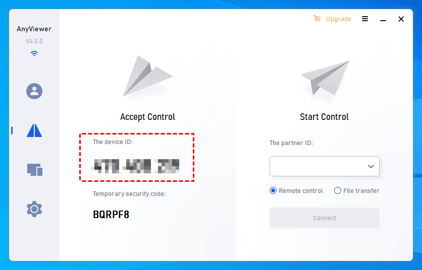 Step 3. Go to the “Connect” tab, and then you can see the device ID. Ask your friends or family member to tell you the device ID of the host PC.