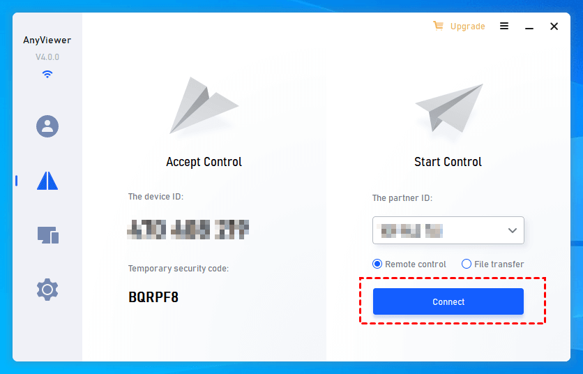 Step 4. Enter the device ID of the remote PC and then click on “Connect”.