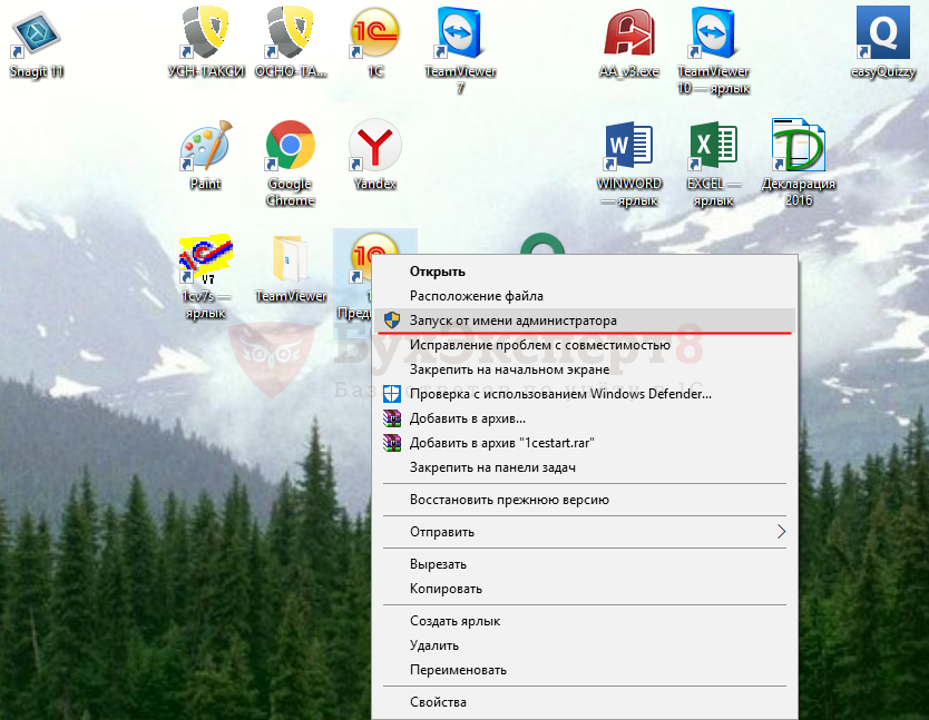 Если обновление в программе настроено и происходит автоматически из 1С, нажмите правой кнопкой мыши на значок 1С и выберите команду Запуск от имени администратора .