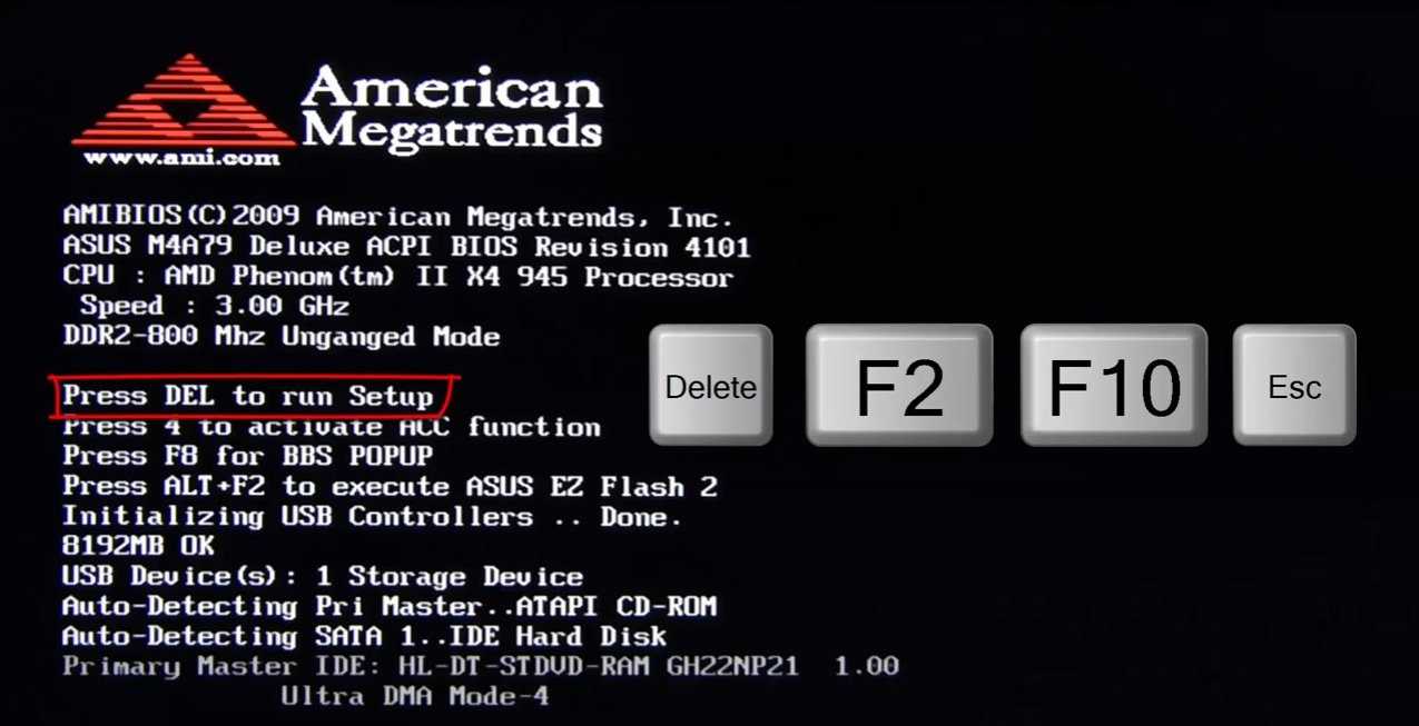 У разных производителей – разные клавиши, чтобы войти в меню загрузки. Обычно это кнопки del, esc, F8 или F9. На стартовом экране обычно написано, какую клавишу использовать.
