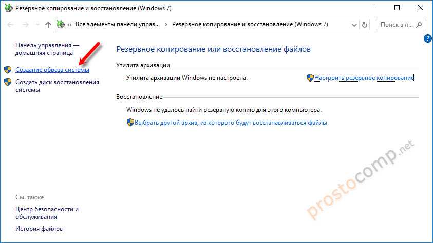 Появится окно, в котором нужно нажать на «Создание образа системы».