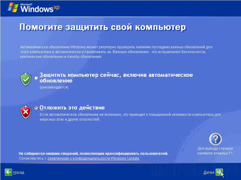 После этого появляется окно с запросом на включение системы автоматического обновления Windows. По опыту работы следует отметить, что лучше автоматическое обновление оставить отключенным. И обновлять систему вручную.