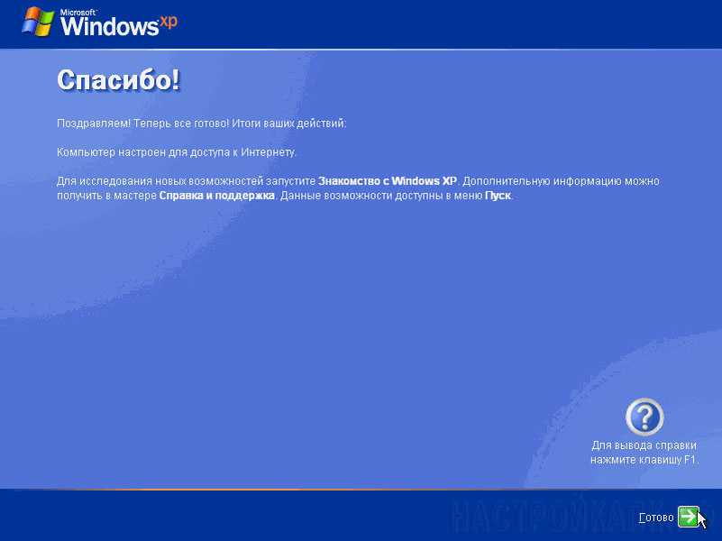 На этом установка Windows XP завершена, жмем кнопку «Готово» и наслаждаемся чистой операционной системой.