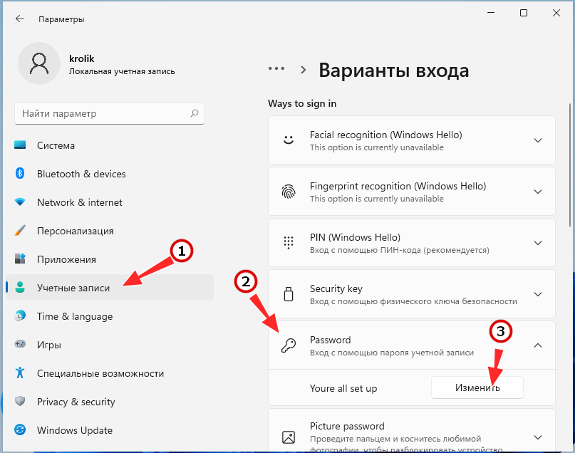Как убрать Пин-код в Windows 11?