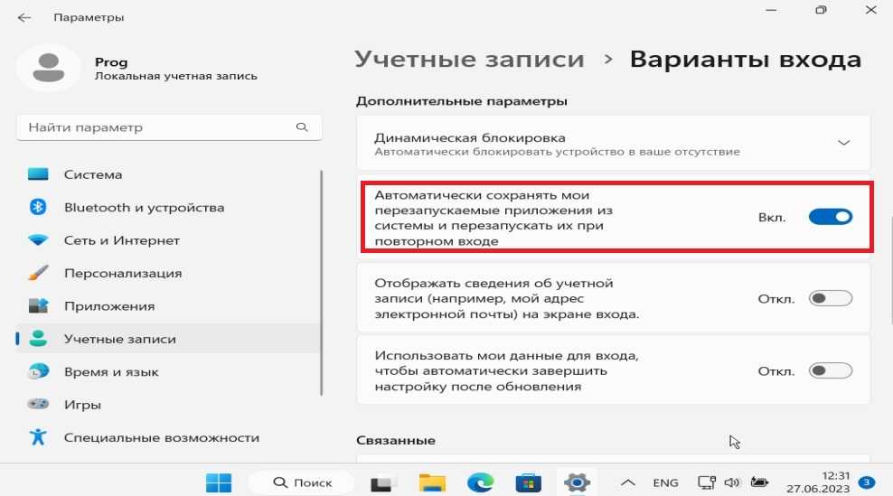 Для этого заходите в «Параметры» – учетные записи – варианты входа. В этом разделе активируйте переключатель для сохранения перезапускаемых приложений.