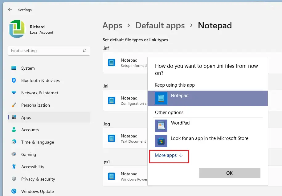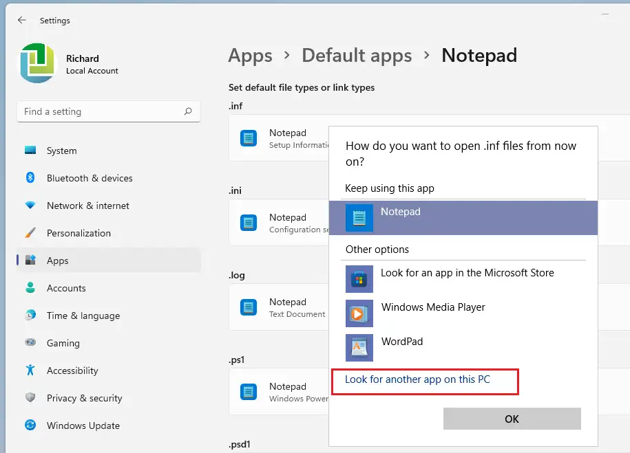 по выбору Блокнот, всплывающее окно предложит вам выбрать приложение, в котором вы хотите всегда открывать файл этого типа.