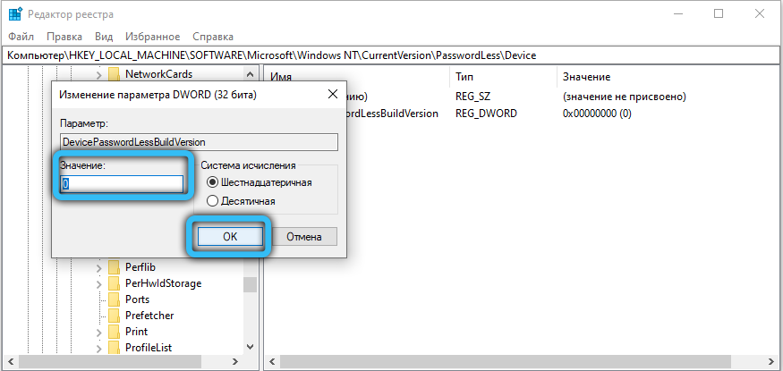 Изменение реестра