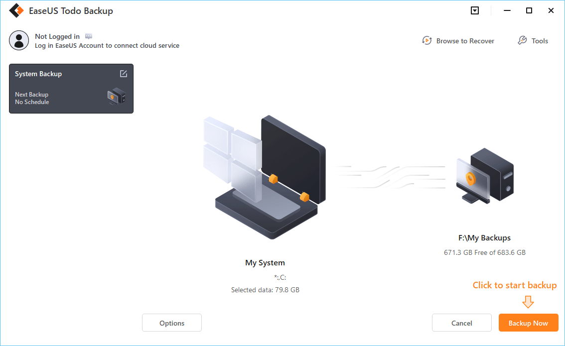 Step 3. EaseUS Todo Backup will automatically select your system partition, you only need to select the backup destination.