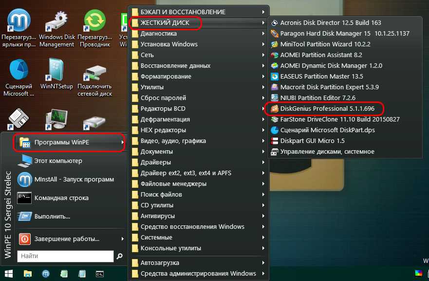 Эта ошибка возникает также при утере атрибутов загрузочного раздела и повреждении системных файлов самой Windows. Последний случай – критический, здесь можно попытаться восстановить целостность системных файлов, но при неудачном проведении этой операции останется только переустановить систему. А вот проблемы с загрузочным разделом решаемы, его всего лишь нужно пересоздать, а потом выполнить в командной строке рассмотренную выше команду. Процесс пересоздания на дисках с разным стилем разметки отличается, мы рассмотрим операции и для MBR, и для GPT. И в проведении обоих этих операций нам поможет упомянутая программа DiskGenius. Запускаем её на LiveDisk’е Стрельца.
