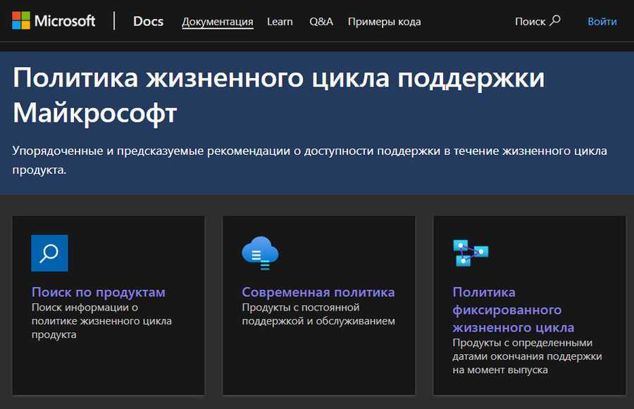 Итак, жизненный цикл продуктов Microsoft – это срок от их выпуска до окончания поддержки компанией. Здесь, как и в других аспектах деятельности Microsoft, существует целая политика. У компании много различных продуктов со своей спецификой, все их под одну гребёнку не выровняешь, вот политика и определяет условия поддержки разного ПО. Детально вся эта политика прописана на специальном ресурсе Microsoft: