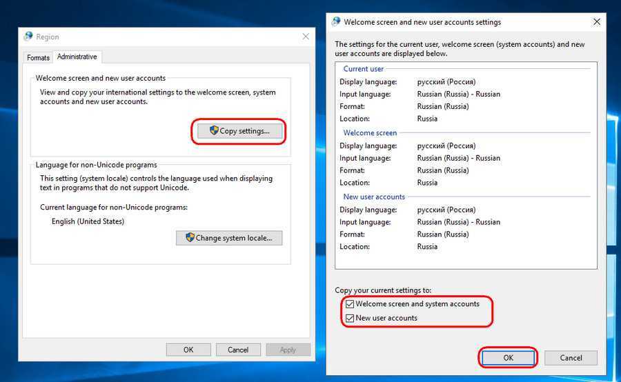 Жмём «Copy settings», выставляем внизу две галочки, кликаем «Ок».