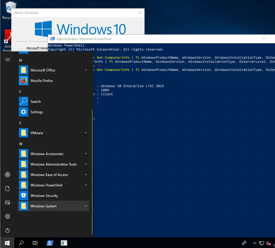 WindowsProductName : Windows 10 Enterprise LTSC 2019 WindowsVersion : 1809 WindowsInstallationType : Client