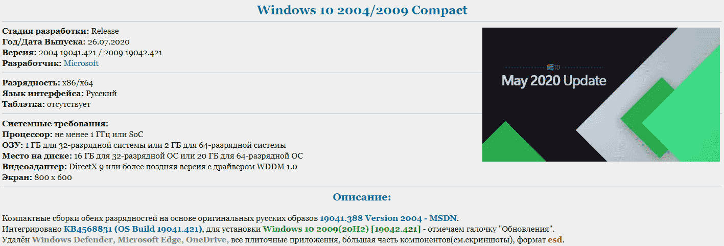 Образ можно скачать с сайта Microsoft, но я вместо этого зашел на известный русский торрент-трекер и скачал оттуда актуальную сборку Windows 10 2004 с вырезанным хламом.