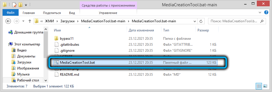 Распакуйте архив в любую папку и запустите файл «MediaCreationTool.bat». В результате может появится предупреждение системы (SmartScreen). В таком случае, нажмите на кнопку «Подробнее» и потом «Выполнить в любом случае».