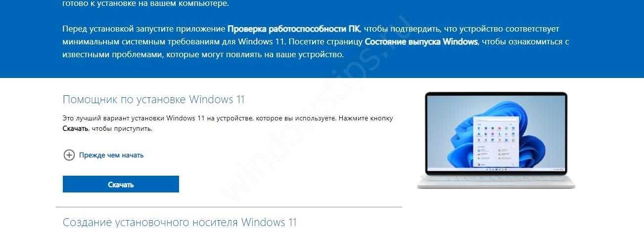 Перейдите на специальную страницу официального сайта Miсrosoft и скачайте программу Windows11 Installation Assistant.
